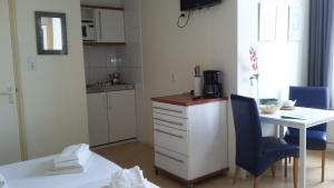This Studio (21 m2) is located at ground level, with two box spring beds and bathroom. It also features a television and kitchenette with a fridge and microwave. Please note that cleaning costs of 45 EUR per stay will be charged, subject to an inspection of the accommodation.