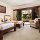 Usytuowana na świeżym powietrzu restauracja Lumbung obejmuje przylegający do niej bar przy basenie oraz tarasy w ogrodzie. Lokal zaprasza na rozmaite dania kuchni azjatyckiej i zachodniej, które zamawiać można również przez obsługę pokoju.