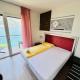 Все номера располагают собственным балконом с видом на озеро или горы. В числе удобств каждого номера телевизором с плоским экраном и спутниковыми каналами. На пол уложен паркет. Ванная комната номера оснащена душем. По запросу предоставляется кондиционер.