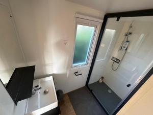 Tous les hébergements du Houlgate - 045 - Mobilhome PREMIUM 3 chambres 6 personnes tout confort Camping 5 étoiles disposent de la climatisation, d'une TV à écran plat, d'un réfrigérateur et d'une salle de bains avec douche. Un lave-vaisselle et un grille-pain sont également à votre disposition, de même qu’une machine à café et une bouilloire.
