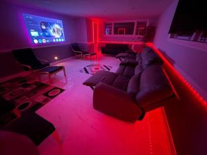 This holiday home features a fireplace. Boasting a private entrance, this air-conditioned holiday home features 2 living rooms, 4 separate bedrooms and 2 bathrooms with a walk-in shower and a bidet. The fully equipped kitchen has a stovetop, a refrigerator, a dishwasher and kitchenware. The spacious holiday home features a washing machine, soundproof walls, a tea and coffee maker as well as a terrace with lake views. The unit is furnished with 9 beds.