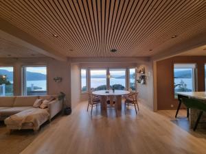 Guests will have a special experience as this villa provides a hot tub and a fireplace. In the well-equipped kitchen, guests will find a stovetop, a refrigerator, a dishwasher and kitchenware. The villa offers a washing machine, a private entrance, a terrace with sea views as well as a shared bathroom boasting a walk-in shower. The unit has 5 beds.