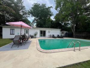 This holiday home's special feature is the private pool. Featuring a private entrance, this spacious holiday home also consists of 3 separate bedrooms and 2 bathrooms with a walk-in shower and a bath. The fully equipped kitchen features a stovetop, a refrigerator, a microwave and a toaster. The air-conditioned holiday home provides a TV with streaming services, a washing machine, a tea and coffee maker, a dining area as well as garden views. The unit provides 3 beds.