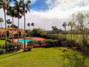 This apartment's special feature is the private pool. This apartment consists of 1 living room, 1 separate bedroom and 1 bathroom with a bath and a hairdryer. The fully equipped kitchen features a stovetop, a refrigerator, kitchenware and an oven. Featuring a balcony with garden views, this apartment also provides a washing machine and a flat-screen TV. The unit offers 3 beds.