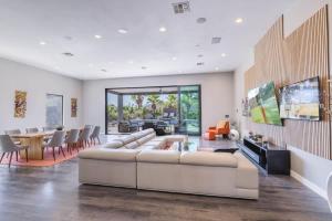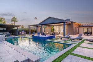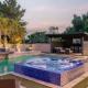 The private pool and hot tub are the standout features of this holiday home. The spacious holiday home features 8 bedrooms and 7 bathrooms with a bath and free toiletries. Guests will find a stovetop, a refrigerator, a dishwasher and kitchenware in the kitchen. The holiday home also has a barbecue. The air-conditioned holiday home offers a TV with streaming services, a washing machine, a tea and coffee maker, a wardrobe as well as city views. The unit offers 11 beds.