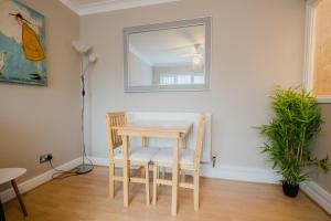 The apartment has 1 bedroom, 1 bathroom, bed linen, towels, a flat-screen TV with streaming services, a dining area, a fully equipped kitchen, and a patio with garden views. Hullidays - Hymers Apartment also features a seating area and a fireplace.