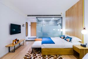 This double room's standout feature is the hot tub. The spacious double room offers air conditioning, soundproof walls, as well as a private bathroom boasting a bath and a shower. The double room features a sofa, parquet floors, a carpeted floor, a flat-screen TV, as well as city views. The unit has 1 bed.