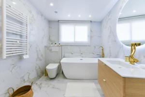 Pokoje: 1This apartment consists of 1 living room, 2 separate bedrooms and 2 bathrooms with a shower and free toiletries. Guests can make meals in the kitchen that is equipped with a stovetop, a refrigerator, a dishwasher and an oven. The air-conditioned apartment provides a flat-screen TV with cable channels, a washing machine, soundproof walls, a tea and coffee maker as well as city views. V této ubytovací jednotce je k dispozici 3 postele.