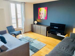 Apartmán ubytování zahrnuje 2 ložnice, 1 koupelnu, ložní prádlo, ručníky, TV s plochou obrazovkou, jídelní kout a plně vybavenou kuchyň. Z terasy ubytování Hypercentre Clermont-FD terrasse + parking se otevírá výhled na město. Koupelna je vybavená vanou.