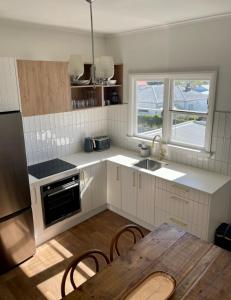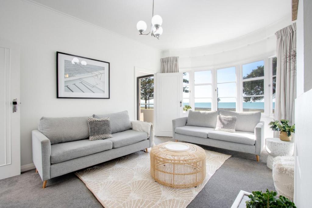 Apartament w Iconic Art Deco Napier Landmark on Marine Parade obejmuje sypialnię, kuchnię oraz łazienkę. Wyposażenie obiektu obejmuje telewizor z płaskim ekranem.