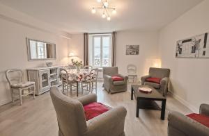 V apartmánu IKE'S Deluxe APARTMENT in Bayeux jsou 3 ložnice, 2 koupelny se sprchou a kuchyň s lednicí a myčkou. V apartmánu IKE'S Deluxe APARTMENT in Bayeux je k dispozici posezení, pračka a koupelna s fénem.