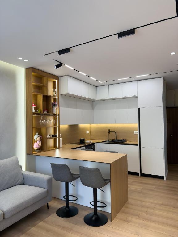 The spacious apartment at Iliria Sea View consists of 2 bedrooms, a living room, a fully equipped kitchen, and 2 bathrooms. A flat-screen TV is offered. The accommodation is non-smoking.