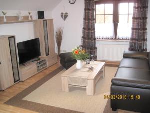 The spacious apartment features a terrace, 1 bedroom, a living room and a well-equipped kitchenette with a dishwasher and an oven. For added convenience, Im Eichenhof Whg 1 - idyllische Dorflage Nähe Grömitz! Jetzt mit WLAN! can provide towels and linens for a supplement.