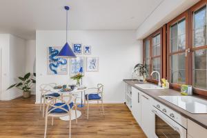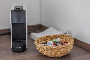 Im Herzen der Pfalz - Urlaub in der Rebenkoje offre 1 camera da letto, salotto con TV a schermo piatto, bagno con doccia e cucina con frigo e lavastoviglie. Asciugamani e lenzuola sono inclusi nei servizi di Im Herzen der Pfalz - Urlaub in der Rebenkoje.