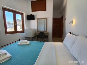 3 beds. Work desk and large bathroom.