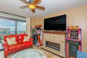 Klimatizovaný prázdninový dům v Immaculate 3BR Suite in Pristine Condition! - 10th Floor- Sand Dunes 1002 zahrnuje 3 ložnice, kabelovou TV, jídelní kout, kuchyň s lednicí a obývací prostor.
