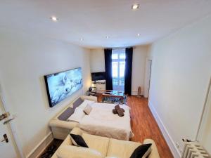 Apartmán Immeuble Historique Chamonix Centre nabízí 1 ložnici, 1 koupelnu, plně vybavenou kuchyň s jídelním koutem a lednicí a obývací část s TV s plochou obrazovkou. Koupelna v ubytování zahrnuje sprchu a toaletní potřeby zdarma. V ubytování Immeuble Historique Chamonix Centre jsou pro hosty připraveny ručníky a ložní prádlo.