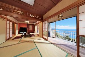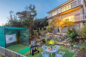 Con accesso diretto su un balcone con vista sul giardino, questa casa vacanze con aria condizionata comprende 2 camere da letto e una cucina con utensili. Presso 絶景貸切別荘in山海荘 無料専用BBQスペースと駐車場付 troverete una TV a schermo piatto in dotazione.