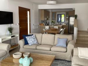 Featuring a private entrance, this air-conditioned holiday home is comprised of 1 living room, 4 separate bedrooms and 4 bathrooms with a walk-in shower and a bath. Guests will find a stovetop, a refrigerator, a dishwasher and kitchenware in the well-equipped kitchen. The holiday home also has a barbecue. The spacious holiday home offers a washing machine, a tea and coffee maker, a seating area, a flat-screen TV with streaming services, as well as sea views. The unit offers 5 beds.