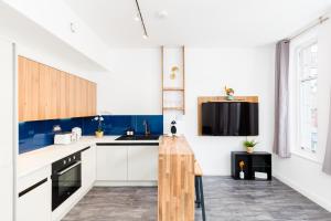 The spacious studio features a tea and coffee maker, a seating area, as well as a private bathroom boasting a walk-in shower and a hairdryer. In the well-equipped kitchenette, guests will find a stovetop, kitchenware, an oven and a microwave. The studio provides a sofa, parquet floors, heating, as well as a flat-screen TV. V této ubytovací jednotce se nachází 2 postele.