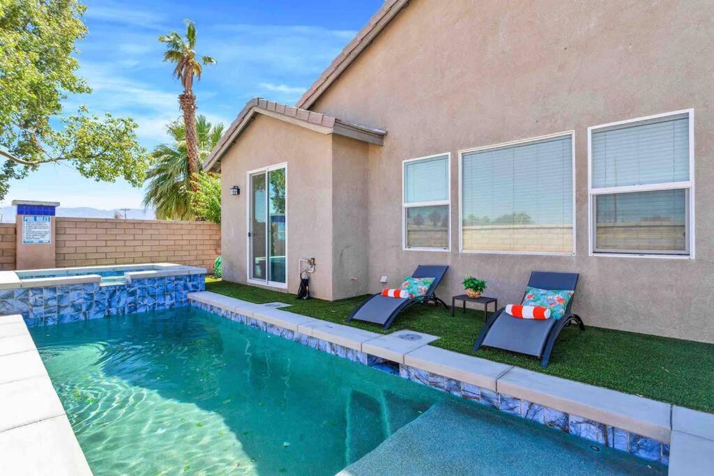 Zaplecze odnowy biologicznej obiektu Indio Vacation House Perfect For Golfers & Family. Obejmuje kryty basen i wannę z hydromasażem.