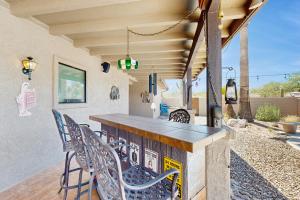 Prázdninový dům má 3 ložnice, 2 koupelny, ložní prádlo, ručníky, TV, kuchyň s kompletním vybavením a patio s výhledem na hory. Klimatizovaný prázdninový dům Infamous Cowboy Ranch House zahrnuje posezení, pračku a koupelnu s toaletními potřebami zdarma.