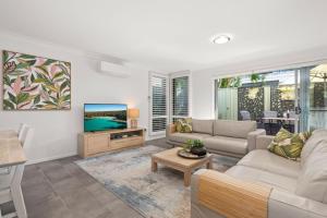 Featuring a private entrance, this air-conditioned holiday home comprises a kitchen, 3 bedrooms and 2 bathrooms with a bath and a shower. Guests will find a stovetop, a refrigerator, a dishwasher and kitchenware in the kitchen. The holiday home also provides guests with a barbecue. The holiday home provides a washing machine, a seating area, as well as a terrace and a patio. The unit offers 4 beds.