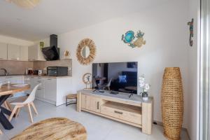 This apartment is comprised of 1 living room, 1 separate bedroom and 1 bathroom with a shower and free toiletries. The well-equipped kitchen features a refrigerator, a dishwasher, kitchenware and an oven. The air-conditioned apartment offers a TV, a washing machine, a tea and coffee maker, a wardrobe as well as sea views. The unit offers 2 beds.