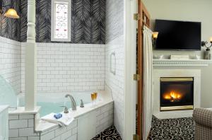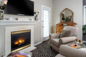 Featuring a fireplace, this charming suite offers a spacious seating area and a TV.