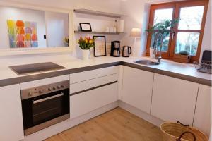 La casa en Insel-Reetkate auf Fehmarn cuenta con 2 dormitorios, baño con ducha y secador de pelo, lavadora y cocina con nevera y lavavajillas. El alojamiento Insel-Reetkate auf Fehmarn puede facilitar toallas y ropa de cama por un cargo adicional.