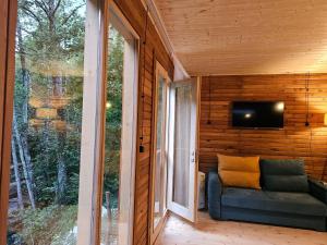Featuring a private entrance, this air-conditioned holiday home consists of a kitchenette, 1 bedroom and 1 bathroom with a shower and a hairdryer. Guests will find a stovetop, a refrigerator, kitchenware and a toaster in the well-fitted kitchenette. The holiday home also offers a barbecue. The holiday home provides a washing machine, soundproof walls, a seating area as well as a terrace with garden views. The unit offers 2 beds.