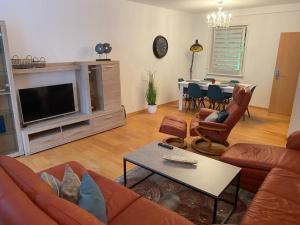 This spacious apartment consists of 1 living room, 3 separate bedrooms and 2 bathrooms with a bath and a shower. Guests can make meals in the kitchen that is equipped with a stovetop, a refrigerator, a dishwasher and kitchenware. Featuring a terrace with garden views, this apartment also provides a washing machine and a flat-screen TV with cable channels. The unit provides 3 beds.
