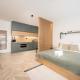 The suite has 1 bedroom and 1 bathroom with a shower and free toiletries. In the well-equipped kitchen, guests will find a stovetop, a refrigerator, kitchenware and a microwave. The suite offers a washing machine, a tea and coffee maker, a seating area, a wardrobe and a flat-screen TV with streaming services. V této ubytovací jednotce se nachází 3 postele.