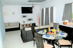 Featuring a private entrance, this air-conditioned holiday home consists of 1 living room, 1 separate bedroom and 1 bathroom with a bath and a shower. Guests can make meals in the kitchen that is equipped with a stovetop, a refrigerator, kitchenware and an oven. The unit features a washing machine, sea views, a terrace and wine/champagne is provided for guests. The unit offers 3 beds.