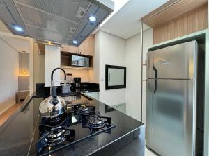 Klimatizovaný apartmán Ipê Amarelo 101 - Apê NOVO Gramado prox Lago Negro tvoří 1 ložnice, obývací pokoj, plně vybavená kuchyň s lednicí a troubou a 1 koupelna. V apartmánu ubytování je k dispozici posezení, pračka a koupelna s fénem.
