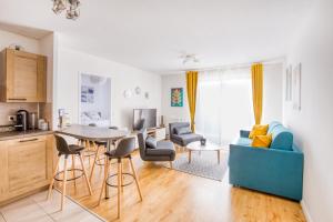 Pokoje: 1This apartment consists of 1 living room, 1 separate bedroom and 1 bathroom with a shower and free toiletries. Meals can be prepared in the kitchen, which is equipped with a stovetop, a refrigerator, a dishwasher and kitchenware. This apartment features a washing machine, flat-screen TV with streaming services, city views, as well as wine/champagne for guests. V této ubytovací jednotce je k dispozici 2 postele.