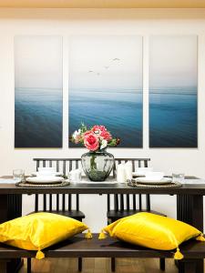 Featuring a private entrance, this air-conditioned villa comprises 1 living room, 3 separate bedrooms and 2 bathrooms with a bath and a shower. The fully equipped kitchen features a stovetop, a refrigerator, kitchenware and a microwave. The villa provides a washing machine, tatami, a dining area, a wardrobe, as well as a flat-screen TV. The unit offers 8 beds.