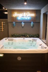 This apartment boasts a hot tub, spa bath and sauna. This spacious apartment consists of 1 living room, 2 separate bedrooms and 2 bathrooms with a shower and free toiletries. In the well-fitted kitchen, guests will find a stovetop, a refrigerator, a dishwasher and kitchenware. The air-conditioned apartment provides a flat-screen TV with streaming services, a washing machine, a private entrance, soundproof walls as well as garden views. The unit offers 3 beds.