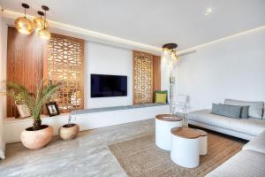 Featuring a private entrance, this spacious apartment also is comprised of 3 bedrooms, a seating area and 2 bathrooms with a walk-in shower and a hairdryer. Guests can make meals in the kitchen that is fitted with a refrigerator, a dishwasher, kitchenware and an oven. The air-conditioned apartment offers a flat-screen TV with cable channels, a washing machine, soundproof walls, a tea and coffee maker as well as pool views. The unit offers 4 beds.