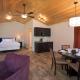 Entspannen Sie in einem der geräumigen Chalets mit Sitzecke und Kamin. Von der privaten Terrasse aus genießen Sie einen Blick auf den Garten und die umliegenden Berge. Das eigene Bad ist mit einer Dusche, einem Haartrockner, Handtüchern und kostenfreien Pflegeprodukten ausgestattet.