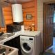 Dieses Ferienhaus mit einer Terrasse und Seeblick hat 2 Schlafzimmer, ein Wohnzimmer, einen Flachbild-TV, eine gut ausgestattete Küchenzeile mit einem Kühlschrank und einer Herdplatte sowie 1 Badezimmer mit einer Dusche. In diesem Ferienhaus werden Handtücher und Bettwäsche angeboten.