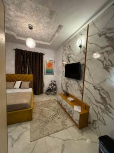 The hot tub and sauna are the standout features of this holiday home. The holiday home's kitchen is available for cooking and storing food. The holiday home has air conditioning, a washing machine, a minibar as well as a terrace with garden views. The unit has 5 beds.