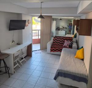 Apartmán ubytování poskytuje 1 ložnici, 1 koupelnu, ložní prádlo, ručníky, kabelovou TV s plochou obrazovkou, jídelní kout a plně vybavenou kuchyň. Z terasy ubytování João Pessoa Flat Beira Mar se otevírá výhled na město. Koupelna v João Pessoa Flat Beira Mar je vybavena sprchou, fénem, pračkou a pantoflemi.