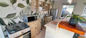 The spacious apartment is fitted with 1 bedroom, 1 bathroom, bed linen, towels, a flat-screen TV with streaming services, a dining area, a fully equipped kitchen, and a patio with pool views. Guests at Joy Haven - Open Plan Studio can enjoy a meal in the outdoor dining area with garden views.