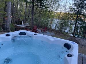 The hot tub and fireplace are the standout features of this chalet. Boasting a private entrance, this spacious chalet also comes with 1 living room, 2 separate bedrooms and 2 bathrooms with a hairdryer. Guests will find a stovetop, a refrigerator, a dishwasher and kitchenware in the fully equipped kitchen. The chalet also includes a barbecue. Featuring a terrace with lake views, this chalet also features a tea and coffee maker and a flat-screen TV with streaming services. The unit is furnished with 3 beds.