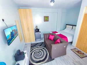 In the kitchen, guests will find a stovetop, a refrigerator, kitchenware and a microwave. This apartment has an electric kettle, a tiled floor and a flat-screen TV. V této ubytovací jednotce se nachází 1 postel.
