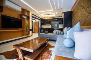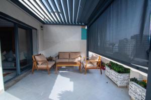The private pool is the special feature of this apartment. This spacious apartment comprises 2 living rooms, 2 separate bedrooms and 2 bathrooms with a walk-in shower and free toiletries. The fully equipped kitchen features a refrigerator, kitchenware and a microwave. The air-conditioned apartment provides a flat-screen TV, a washing machine, a tea and coffee maker, a seating area as well as sea views. The unit offers 5 beds.