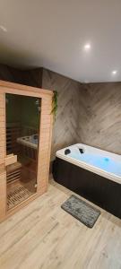 This apartment's standout features are the hot tub, spa bath and sauna. Boasting a private entrance, this air-conditioned apartment includes 1 living room, 1 separate bedroom and 1 bathroom with a shower. The fully equipped kitchen features a stovetop, a refrigerator and kitchenware. The apartment has parquet floors, a seating area with a flat-screen TV with streaming services, soundproof walls, a tea and coffee maker, as well as a dining area. V této ubytovací jednotce se nachází 1 postel.