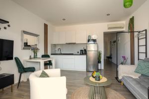 This spacious apartment features 1 living room, 1 separate bedroom and 2 bathrooms with a walk-in shower and free toiletries. In the well-fitted kitchen, guests will find a stovetop, a refrigerator, kitchenware and a microwave. The air-conditioned apartment features a flat-screen TV with satellite channels, a private entrance, soundproof walls, a tea and coffee maker as well as sea views. The unit has 1 bed.