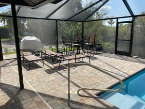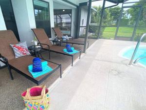 The private pool is the standout feature of this holiday home. Guests will find a stovetop, a refrigerator, a dishwasher and an oven in the well-fitted kitchen. The holiday home also includes a barbecue. The spacious air-conditioned holiday home features a flat-screen TV, a washing machine, a private entrance, a tea and coffee maker as well as garden views. The unit has 5 beds.